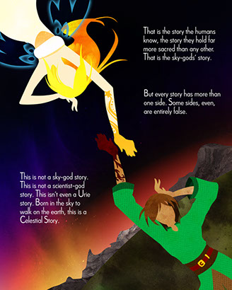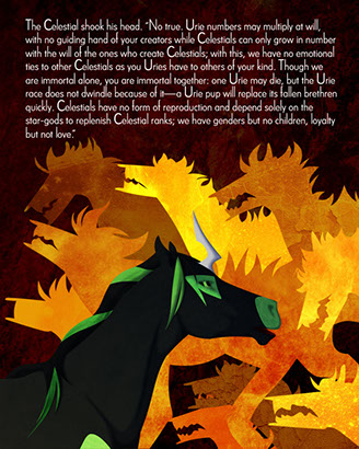 For as long as anyone can remember—except for the star gods, whose memory is infinite—the star-god-created Celestials have battled with the scientist-god-molded Uries. According to the story the sky gods told their humans, the Celestials and Uries were just weapons in the battling that raged between the sky gods and the earth gods. The Uries were made to terrorize the humans and the Celestials were made to protect them.